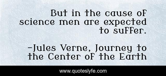 This page presents the quote "But in the cause of science men are expected to suffer.". Author of this quote is Jules Verne, Journey to the Center of the Earth. .