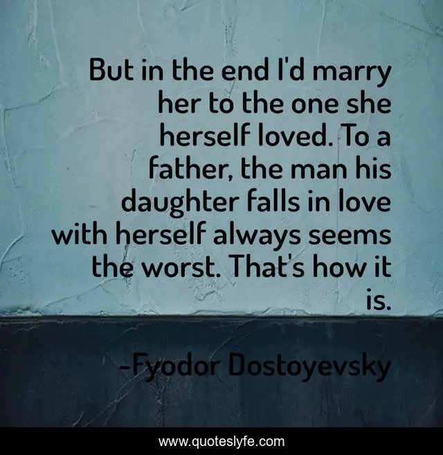 This page presents the quote "But in the end I'd marry her to the one she herself loved. To a father, the man his daughter falls in love with herself always seems the worst. That's how it is.". Author of this quote is Fyodor Dostoyevsky. This quote is about marriage, father, daughter,.