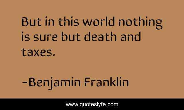 This page presents the quote "But in this world nothing is sure but death and taxes.". Author of this quote is Benjamin Franklin. .
