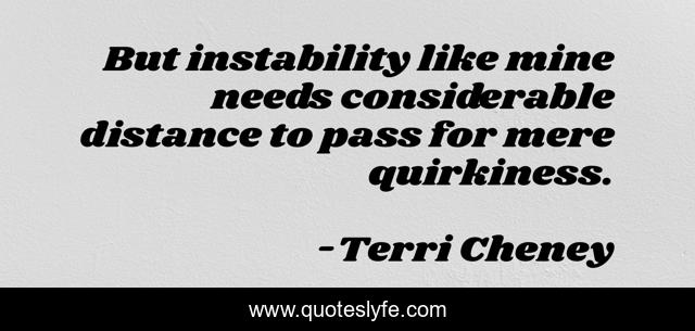 "Terri Cheney Quotes." Quoteslyfe.com, 2025. Sat. 06 Dec. 2025. <https://www.quoteslyfe.com/quote/But-instability-like-mine-needs-considerable-distance-204398>.
