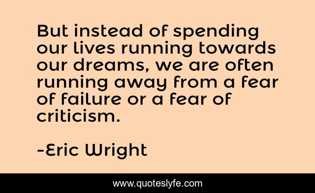 This page presents the quote "But instead of spending our lives running towards our dreams, we are often running away from a fear of failure or a fear of criticism.". Author of this quote is Eric Wright. This quote is about criticism, failure, life, dreams,.