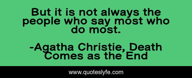 This page presents the quote "But it is not always the people who say most who do most.". Author of this quote is Agatha Christie, Death Comes as the End. This quote is about action-speaks-louder-than-words, work, equality,.