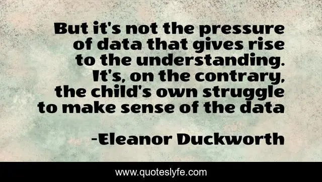 This page presents the quote "But it's not the pressure of data that gives rise to the understanding. It's, on the contrary, the child's own struggle to make sense of the data". Author of this quote is Eleanor Duckworth. This quote is about teaching, education, learning,.