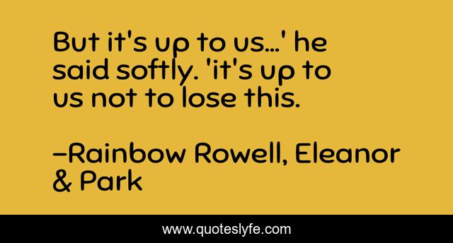 This page presents the quote "But it's up to us...' he said softly. 'it's up to us not to lose this.". Author of this quote is Rainbow Rowell, Eleanor & Park. This quote is about romance, emotional, abuse, love, affection,.