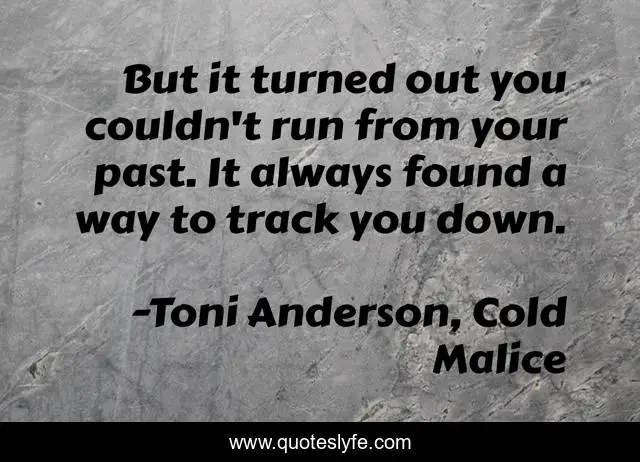 This page presents the quote "But it turned out you couldn't run from your past. It always found a way to track you down.". Author of this quote is Toni Anderson, Cold Malice. This quote is about romance, suspense, thriller,.