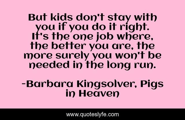 "Barbara Kingsolver, Pigs in Heaven Quotes." Quoteslyfe.com, 2025. Sat. 06 Dec. 2025. <https://www.quoteslyfe.com/quote/But-kids-don-t-stay-with-you-166805>.