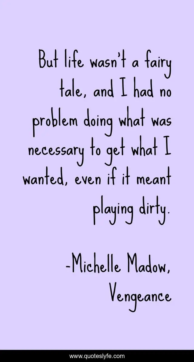 This page presents the quote "But life wasn't a fairy tale, and I had no problem doing what was necessary to get what I wanted, even if it meant playing dirty.". Author of this quote is Michelle Madow, Vengeance. .