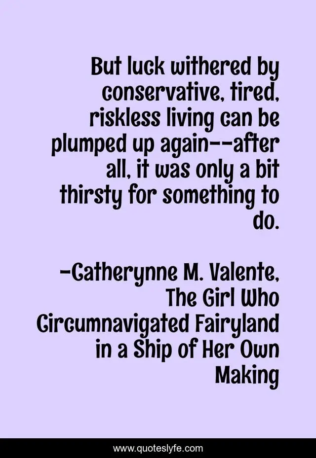 "Catherynne M. Valente, The Girl Who Circumnavigated Fairyland in a Ship of Her Own Making Quotes." Quoteslyfe.com, 2025. Sat. 06 Dec. 2025. <https://www.quoteslyfe.com/quote/But-luck-withered-by-conservative-tired-riskless-239556>.