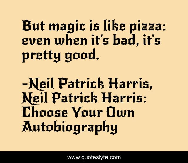 "Neil Patrick Harris, Neil Patrick Harris: Choose Your Own Autobiography Quotes." Quoteslyfe.com, 2025. Fri. 05 Dec. 2025. <https://www.quoteslyfe.com/quote/But-magic-is-like-pizza-even-when-133912>.