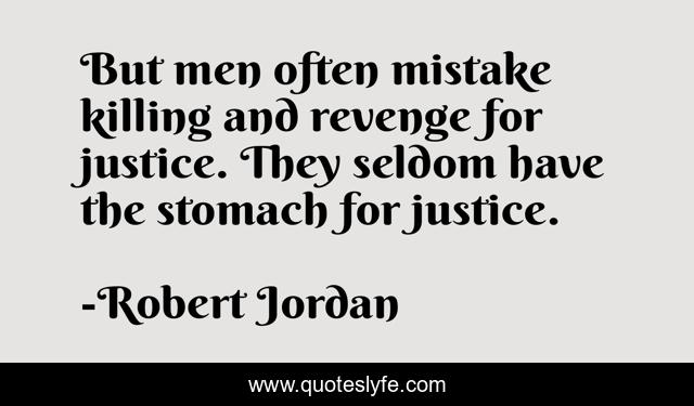 This page presents the quote "But men often mistake killing and revenge for justice. They seldom have the stomach for justice.". Author of this quote is Robert Jordan. This quote is about justice, retribution, revenge,.
