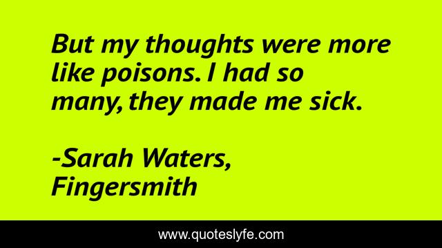 This page presents the quote "But my thoughts were more like poisons. I had so many, they made me sick.". Author of this quote is Sarah Waters, Fingersmith. .