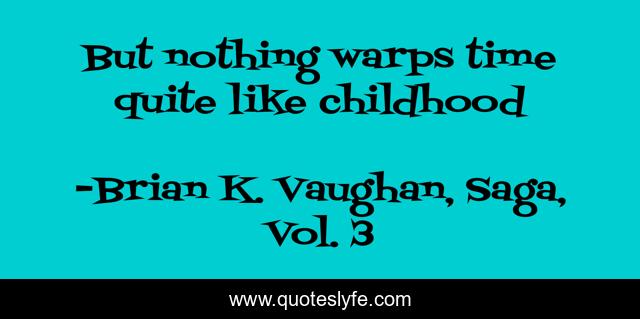 This page presents the quote "But nothing warps time quite like childhood". Author of this quote is Brian K. Vaughan, Saga, Vol. 3. This quote is about childhood, time,.
