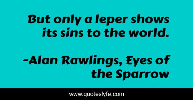 This page presents the quote "But only a leper shows its sins to the world.". Author of this quote is Alan Rawlings, Eyes of the Sparrow. .