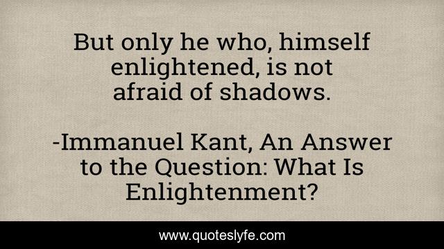 This page presents the quote "But only he who, himself enlightened, is not afraid of shadows.". Author of this quote is Immanuel Kant, An Answer to the Question: What Is Enlightenment?. This quote is about life, philosophy,.