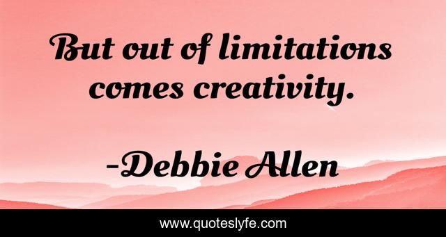 This page presents the quote "But out of limitations comes creativity.". Author of this quote is Debbie Allen. .