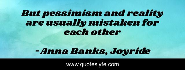 This page presents the quote "But pessimism and reality are usually mistaken for each other". Author of this quote is Anna Banks, Joyride. This quote is about life, pessimism, reality,.
