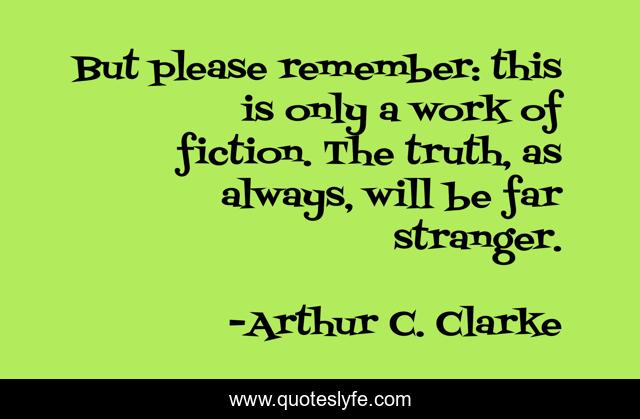 This page presents the quote "But please remember: this is only a work of fiction. The truth, as always, will be far stranger.". Author of this quote is Arthur C. Clarke. This quote is about weird, strange, truth, fiction,.