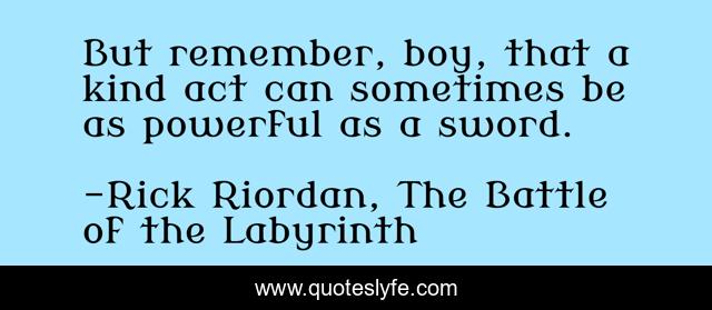 "Rick Riordan, The Battle of the Labyrinth Quotes." Quoteslyfe.com, 2025. Mon. 08 Dec. 2025. <https://www.quoteslyfe.com/quote/But-remember-boy-that-a-kind-act-3978>.
