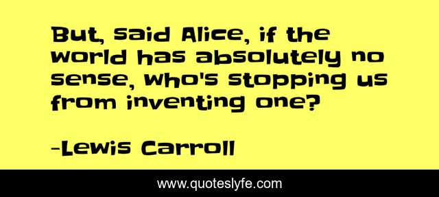 This page presents the quote "But, said Alice, if the world has absolutely no sense, who's stopping us from inventing one?". Author of this quote is Lewis Carroll. This quote is about freedom, reality, world,.