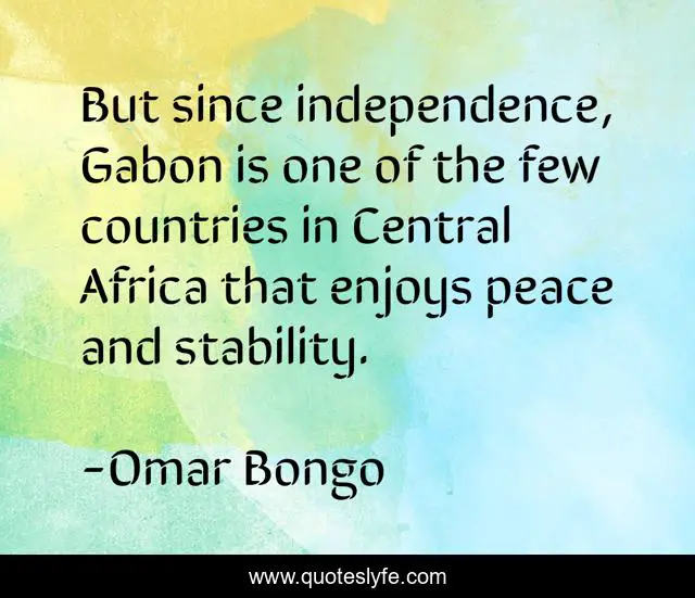 This page presents the quote "But since independence, Gabon is one of the few countries in Central Africa that enjoys peace and stability.". Author of this quote is Omar Bongo. This quote is about stability, peace, africa,.