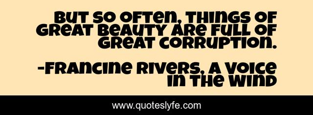 This page presents the quote "But so often, things of great beauty are full of great corruption.". Author of this quote is Francine Rivers, A Voice in the Wind. This quote is about corruption, beauty,.