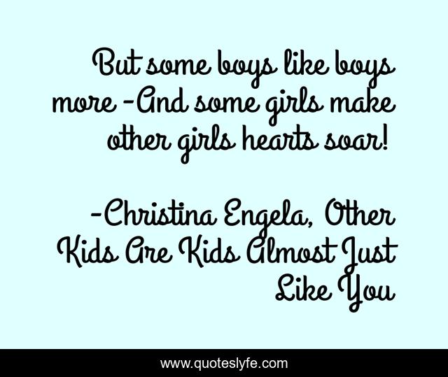 "Christina Engela, Other Kids Are Kids Almost Just Like You Quotes." Quoteslyfe.com, 2025. Sat. 06 Dec. 2025. <https://www.quoteslyfe.com/quote/But-some-boys-like-boys-more-And-225721>.