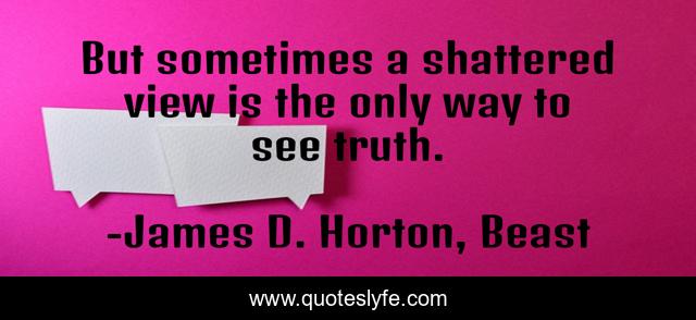 This page presents the quote "But sometimes a shattered view is the only way to see truth.". Author of this quote is James D. Horton, Beast. This quote is about alpha-male, strong-female-characters, paranormal-romance, vampires,.