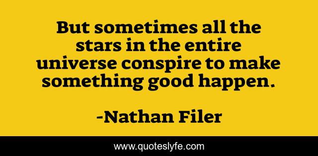 This page presents the quote "But sometimes all the stars in the entire universe conspire to make something good happen.". Author of this quote is Nathan Filer. .