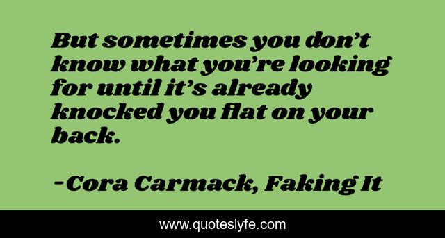 This page presents the quote "But sometimes you don’t know what you’re looking for until it’s already knocked you flat on your back.". Author of this quote is Cora Carmack, Faking It. .