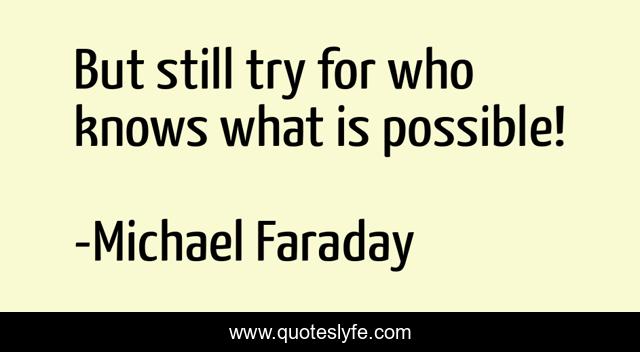 "Michael Faraday Quotes." Quoteslyfe.com, 2025. Fri. 05 Dec. 2025. <https://www.quoteslyfe.com/quote/But-still-try-for-who-knows-what-42022>.