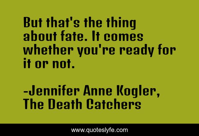 This page presents the quote "But that's the thing about fate. It comes whether you're ready for it or not.". Author of this quote is Jennifer Anne Kogler, The Death Catchers. .