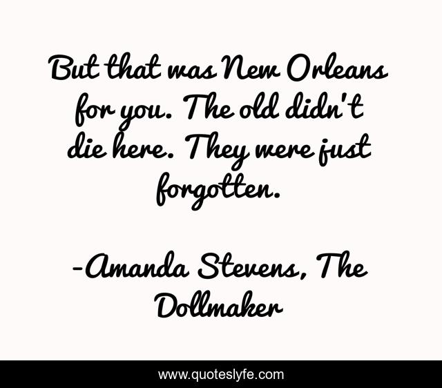 This page presents the quote "But that was New Orleans for you. The old didn’t die here. They were just forgotten.". Author of this quote is Amanda Stevens, The Dollmaker. This quote is about die, old, forgotten,.