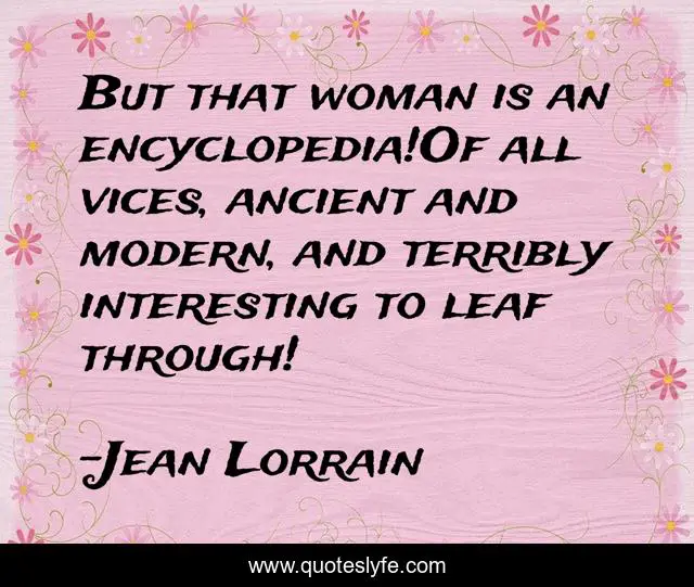 "Jean Lorrain Quotes." Quoteslyfe.com, 2025. Sat. 06 Dec. 2025. <https://www.quoteslyfe.com/quote/But-that-woman-is-an-encyclopedia-Of-177179>.