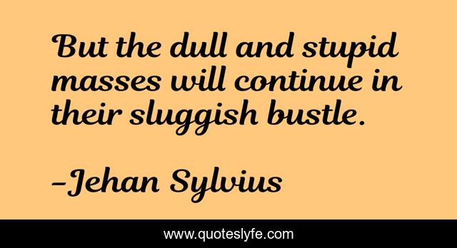 This page presents the quote "But the dull and stupid masses will continue in their sluggish bustle.". Author of this quote is Jehan Sylvius. This quote is about ignorance, mankind,.