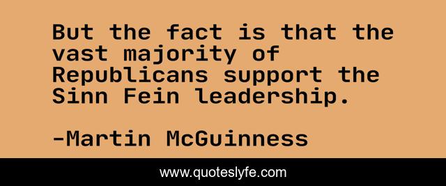 This page presents the quote "But the fact is that the vast majority of Republicans support the Sinn Fein leadership.". Author of this quote is Martin McGuinness. This quote is about support, republicans, fact,.