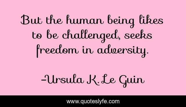 This page presents the quote "But the human being likes to be challenged, seeks freedom in adversity.". Author of this quote is Ursula K. Le Guin. .