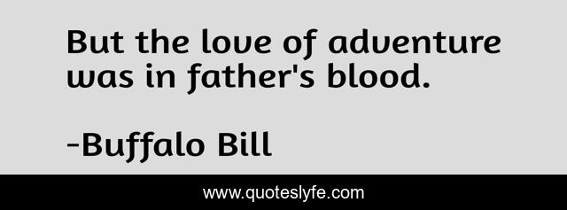 This page presents the quote "But the love of adventure was in father's blood.". Author of this quote is Buffalo Bill. This quote is about father, adventure, blood,.