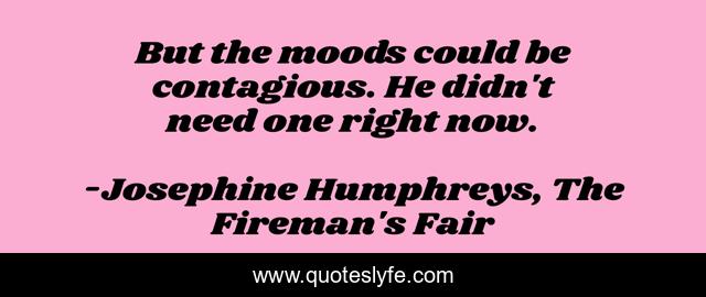This page presents the quote "But the moods could be contagious. He didn't need one right now.". Author of this quote is Josephine Humphreys, The Fireman's Fair. This quote is about empathy, mood,.