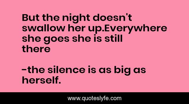 "the silence is as big as herself. Quotes." Quoteslyfe.com, 2025. Sat. 06 Dec. 2025. <https://www.quoteslyfe.com/quote/But-the-night-doesn-t-swallow-her-168838>.