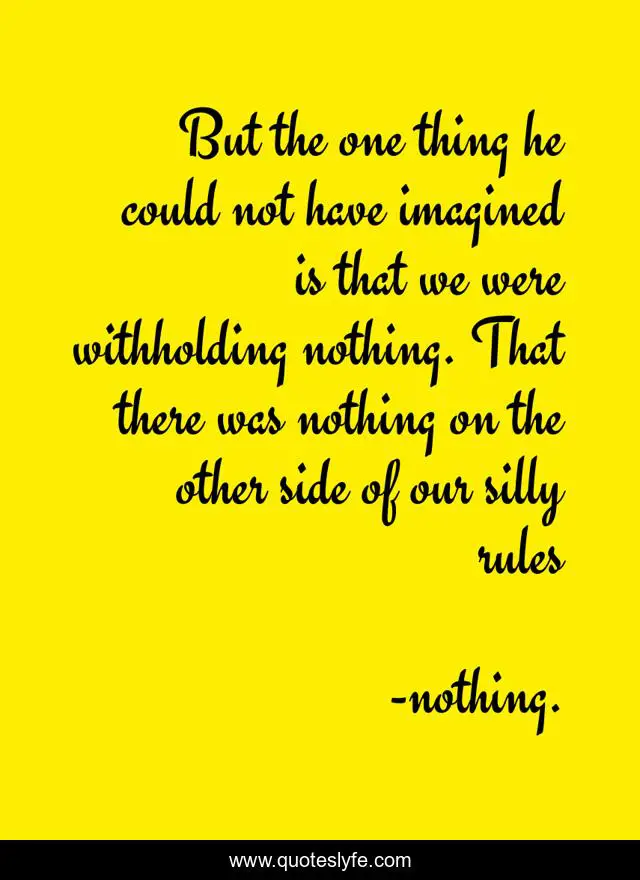 This page presents the quote "But the one thing he could not have imagined is that we were withholding nothing. That there was nothing on the other side of our silly rules". Author of this quote is nothing.. This quote is about lionel shriver, we need to talk about kevin,.