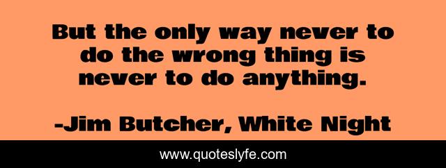 This page presents the quote "But the only way never to do the wrong thing is never to do anything.". Author of this quote is Jim Butcher, White Night. This quote is about cowardice, molly-carpenter, life, harry-dresden, inaction,.