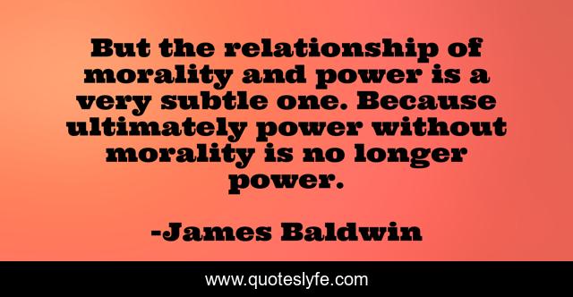 This page presents the quote "But the relationship of morality and power is a very subtle one. Because ultimately power without morality is no longer power.". Author of this quote is James Baldwin. This quote is about without, power, morality,.
