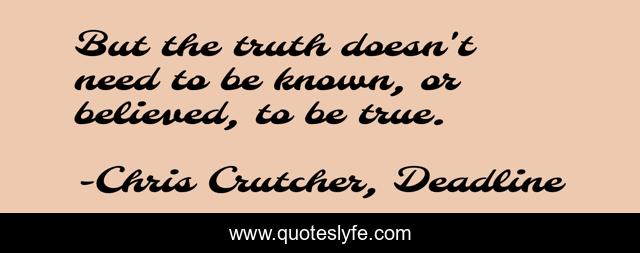 "Chris Crutcher, Deadline Quotes." Quoteslyfe.com, 2025. Fri. 05 Dec. 2025. <https://www.quoteslyfe.com/quote/But-the-truth-doesn-t-need-to-9341>.