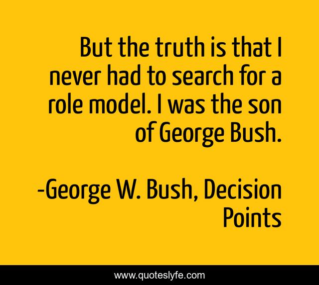This page presents the quote "But the truth is that I never had to search for a role model. I was the son of George Bush.". Author of this quote is George W. Bush, Decision Points. .