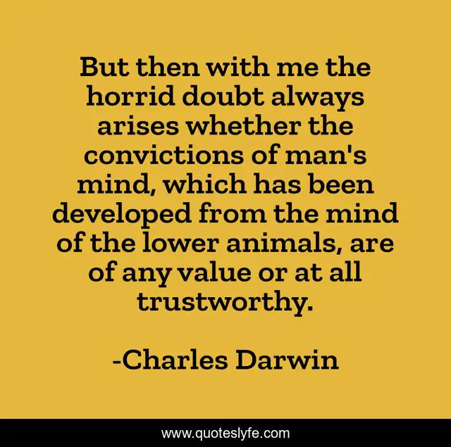 But then with me the horrid doubt always arises whether the convictions of man's mind, which has been developed from the mind of the lower animals, are of any value or at all trustworthy.