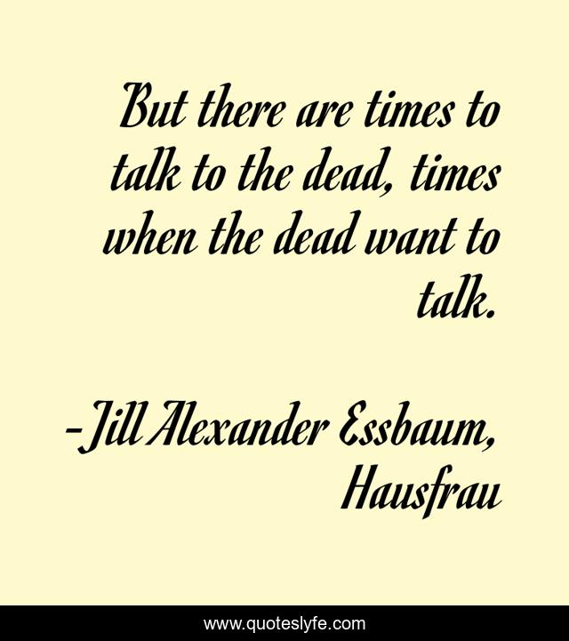 This page presents the quote "But there are times to talk to the dead, times when the dead want to talk.". Author of this quote is Jill Alexander Essbaum, Hausfrau. .