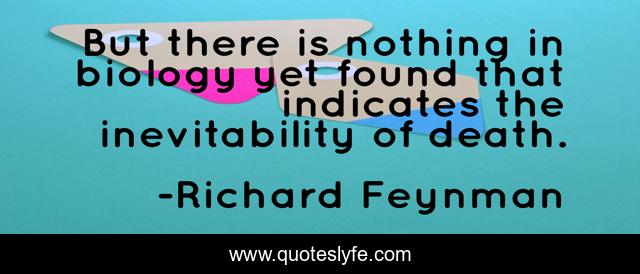 This page presents the quote "But there is nothing in biology yet found that indicates the inevitability of death.". Author of this quote is Richard Feynman. This quote is about biology, death, life,.