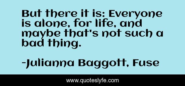 This page presents the quote "But there it is: Everyone is alone, for life, and maybe that's not such a bad thing.". Author of this quote is Julianna Baggott, Fuse. This quote is about alone, life, loneliness,.
