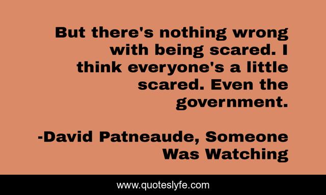 This page presents the quote "But there's nothing wrong with being scared. I think everyone's a little scared. Even the government.". Author of this quote is David Patneaude, Someone Was Watching. This quote is about fear, scared, government,.