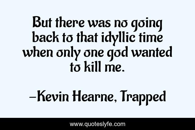 This page presents the quote "But there was no going back to that idyllic time when only one god wanted to kill me.". Author of this quote is Kevin Hearne, Trapped. This quote is about sarcasm, druid-sense, irony,.